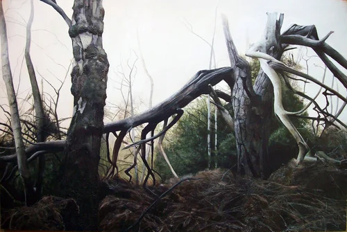 These drawings and paintings are based on Cannock Chase, an area of outstanding beauty in Staffordshire. The aim is to create a true representation of nature, including dead trees alongside new growth. The forest is a continuous source of inspiration evoking a sense of wonder and stillness.